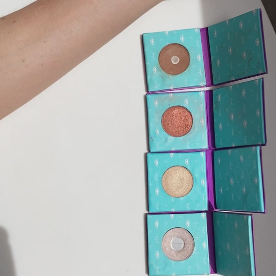 The special formula combines emollients and humectants which make them last longer, and do not accumulate in the crease of the eyelid. A secret: Many of our clients also use them as blush.